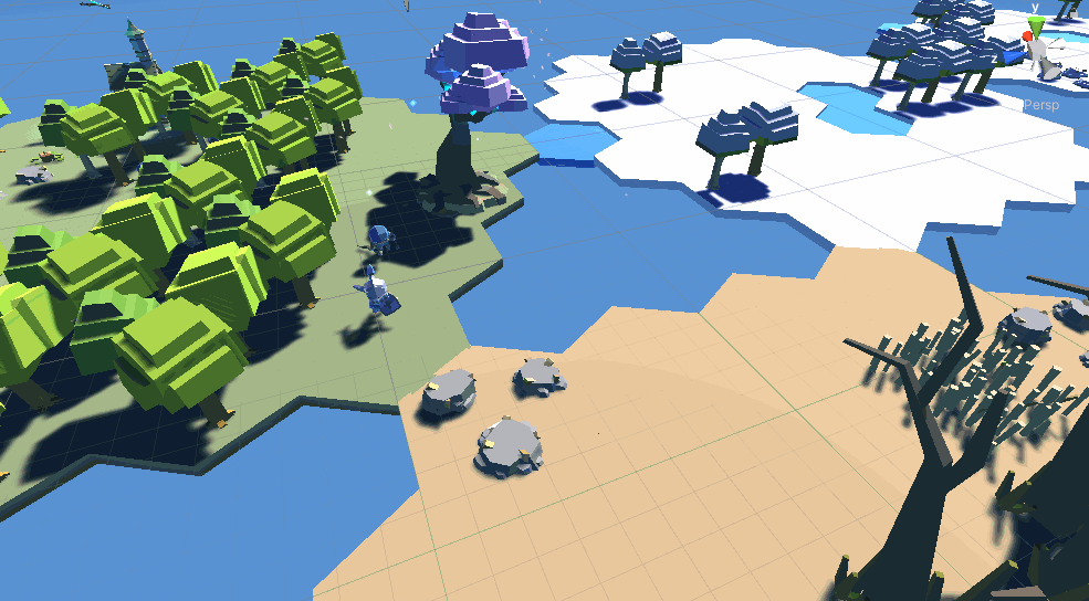 Not only did I not implement this correctly, but in doing so, I found other problems inherent in it. For one thing, even if the Flock Master moves correctly along the hexes, if the group flocking is big enough, units will still be walking on air. There’s nothing pushing them to squeeze onto a single platform. Along with that, I would have to give each individual unit that moves its own Flock Master. That’s some extra overhead and would require reworking my current system since commands would need to go through my Unit Manager. For a worker just gathering rocks, it should only really need to know where it is and where the rock is. I didn’t want to overcomplicate that.